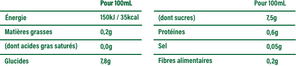 Jus d’orange (58,5%), jus de carotte (39%), jus de citron (2,5%)