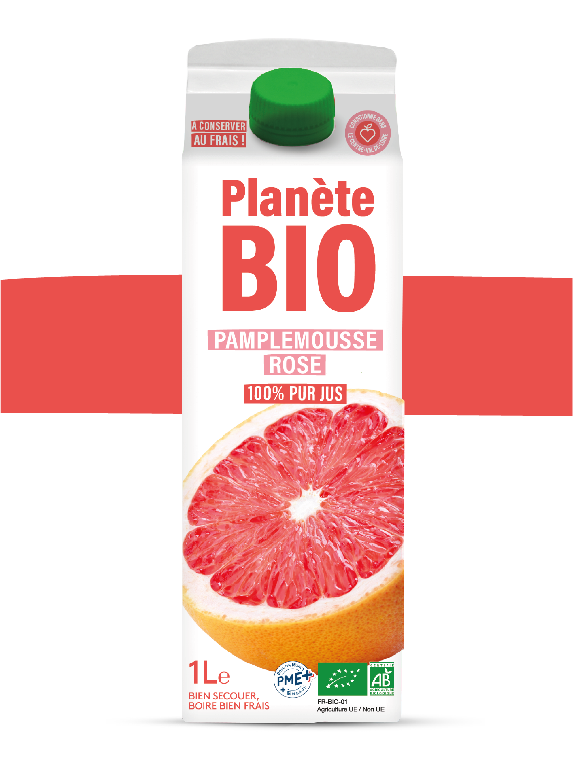 100% pur jus de pamplemousse rose issu de l’agriculture biologique